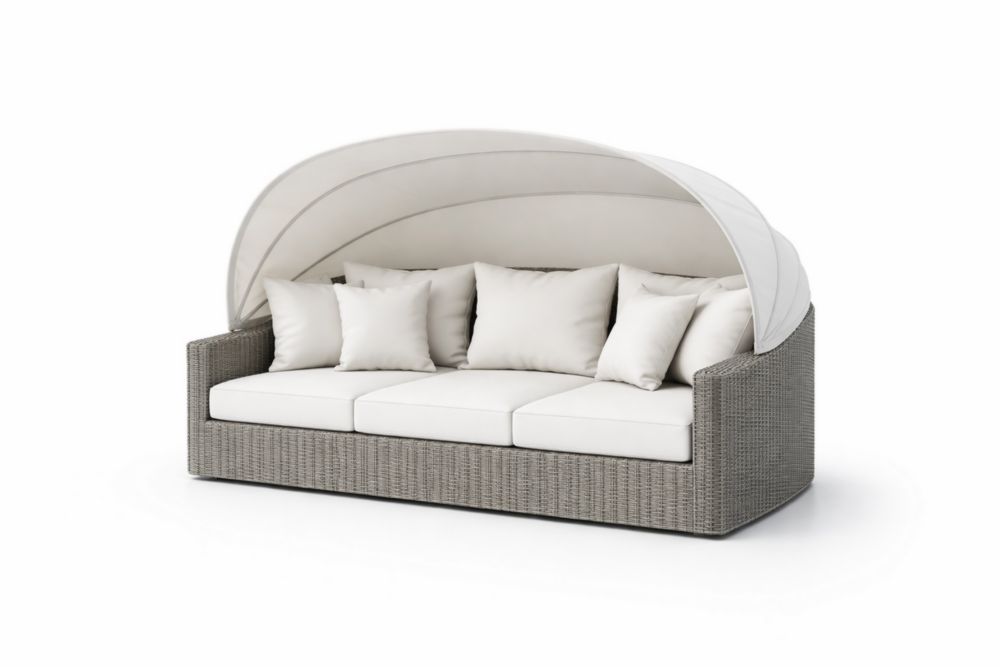 Gray Woven Rattan Outdoor Daybed with Canopy and Cushions