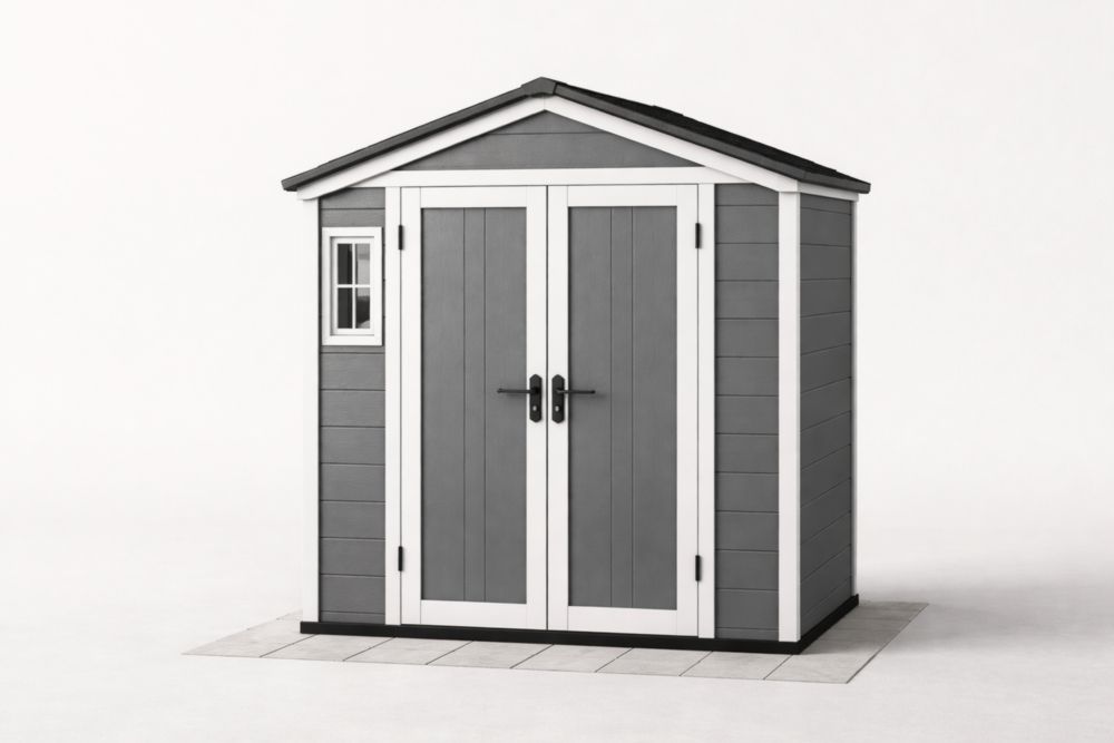 Outdoor Storage Shed Plastic Gray 2-Door with Window 141x82x204 cm(L × W × H)